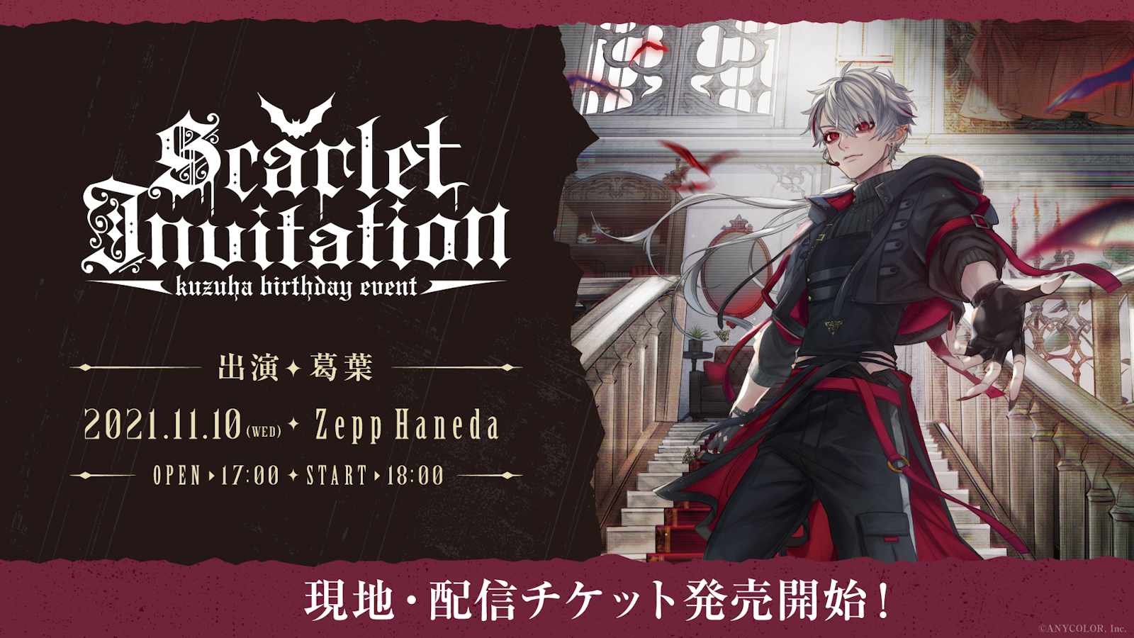 ANYCOLOR株式会社(本社:東京都港区 代表取締役:田角陸、以下「当社」)が運営するVTuber / バーチャルライバーグループ「にじさんじ」より、所属ライバー「葛葉」のソロイベント『Kuzuha Birthday Event 「Scarlet Invitation」』を、Zepp Hanedaにて2021年11月10日(水)に実施することを発表いたします。
