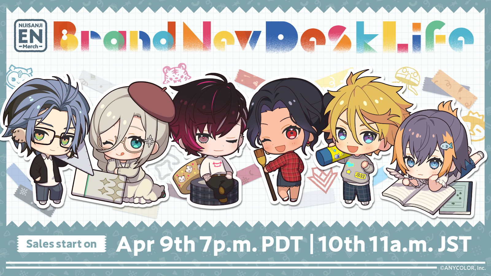Operated by ANYCOLOR Inc., NIJISANJI EN announces the release of new “Brand New Desk Life” merchandise. “Brand New Desk Life” merchandise will be available on the NIJISANJI EN Official Store starting from April 9th (Tue), 19:00 PDT!