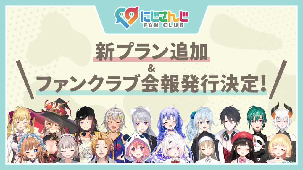 ANYCOLOR株式会社(旧いちから株式会社、本社:東京都港区 代表取締役:田角陸、以下「当社」)が運営するVTuber / バーチャルライバーグループ「にじさんじ」は、公式ファンクラブ「にじさんじ FAN CLUB」の新プランとして「プレミアム年間プラン」および「ベーシック年間プラン」の2プランを2021年6月7日(月)より導入いたします。さらに、ライバー個別ファンクラブにおける「プレミアム年間プラン」にて、年3回発行の会報誌「ファンクラブ会報」を発行いたします。