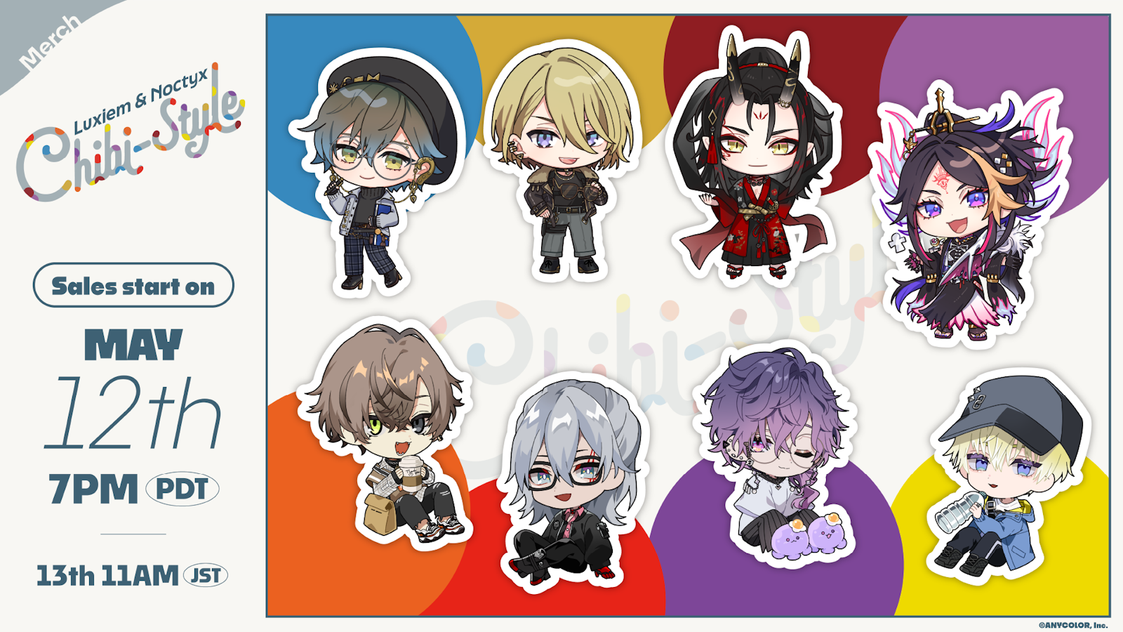 Operated by ANYCOLOR Inc., NIJISANJI EN announces the release of new theme merchandise featuring the VTuber groups “Luxiem” and “Noctyx”. “Luxiem & Noctyx Chibi-Style” merchandise will be available on the NIJISANJI EN Official Store starting from May 12th (Sun), 19:00 PDT!