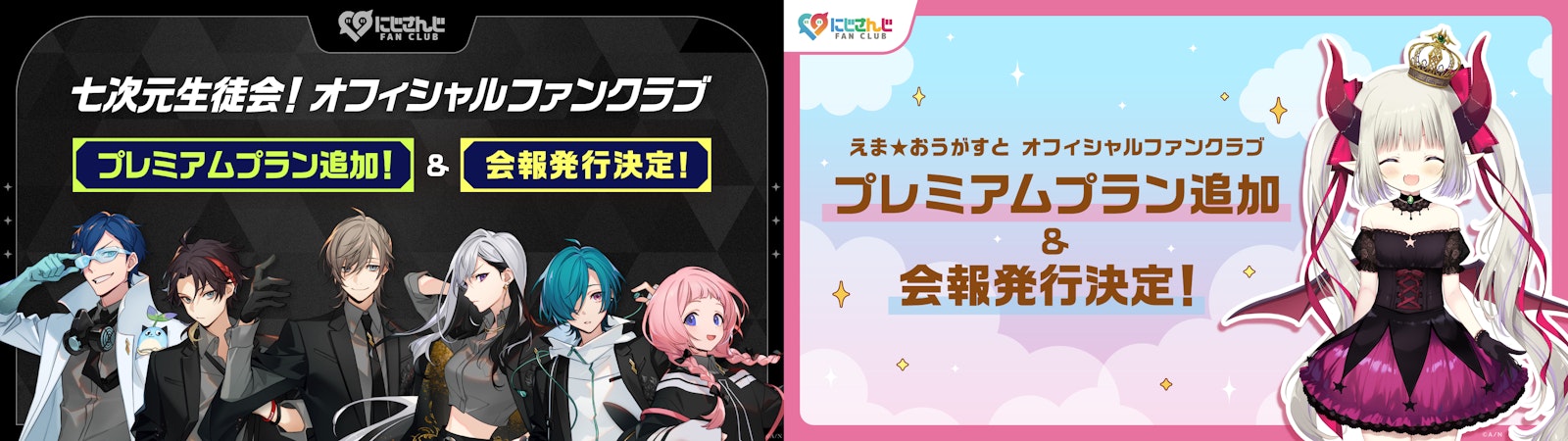 2024年6⽉3⽇(月)から「にじさんじ FAN CLUB」(https://www.nijisanji.jp/fanclubs)にて、「七次元生徒会!」と「えま★おうがすと」の新プラン「プレミアム年間プラン」の新規開設を行います。