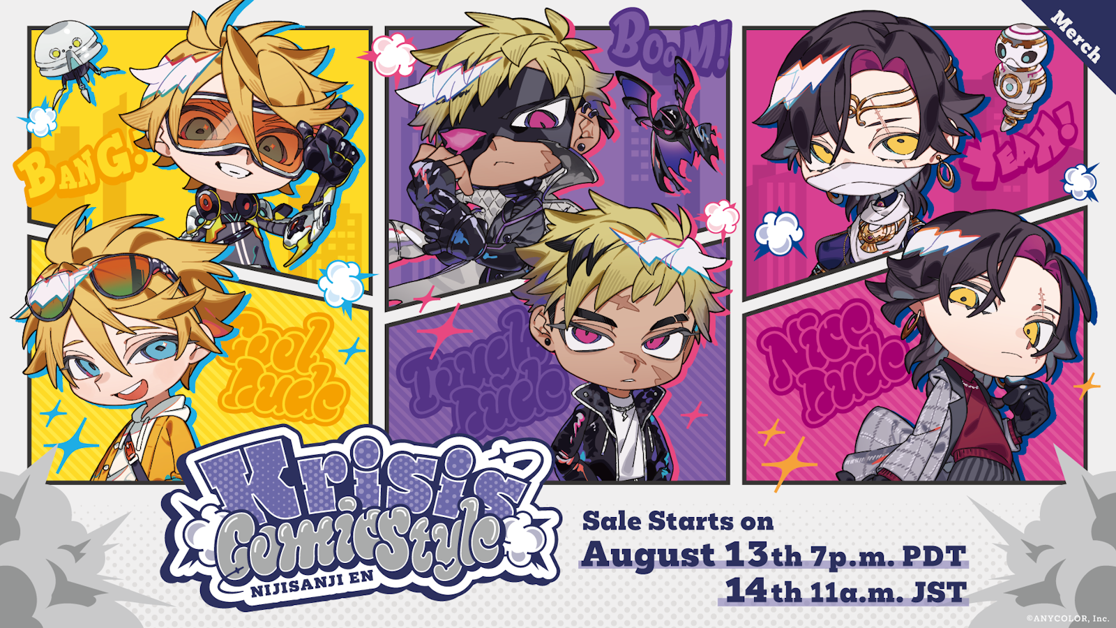 Operated by ANYCOLOR Inc., NIJISANJI EN announces the release of new theme merchandise featuring the VTuber group “Krisis”. “Krisis Comic Style” merchandise will be available on the NIJISANJI EN Official Store starting from August 13th (Tue), 19:00 PDT!
