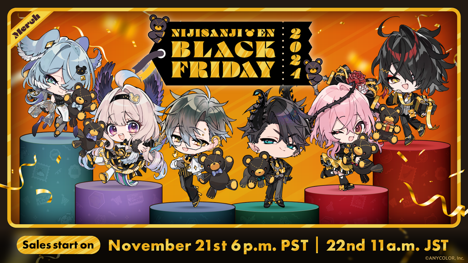 Operated by ANYCOLOR Inc., NIJISANJI EN announces the “NIJISANJI EN BLACK FRIDAY” campaign. “NIJISANJI EN BLACK FRIDAY” merchandise, as well as resales of select merchandise, will be available on the NIJISANJI EN Official Store starting from November 21st (Thu), 18:00 PST!