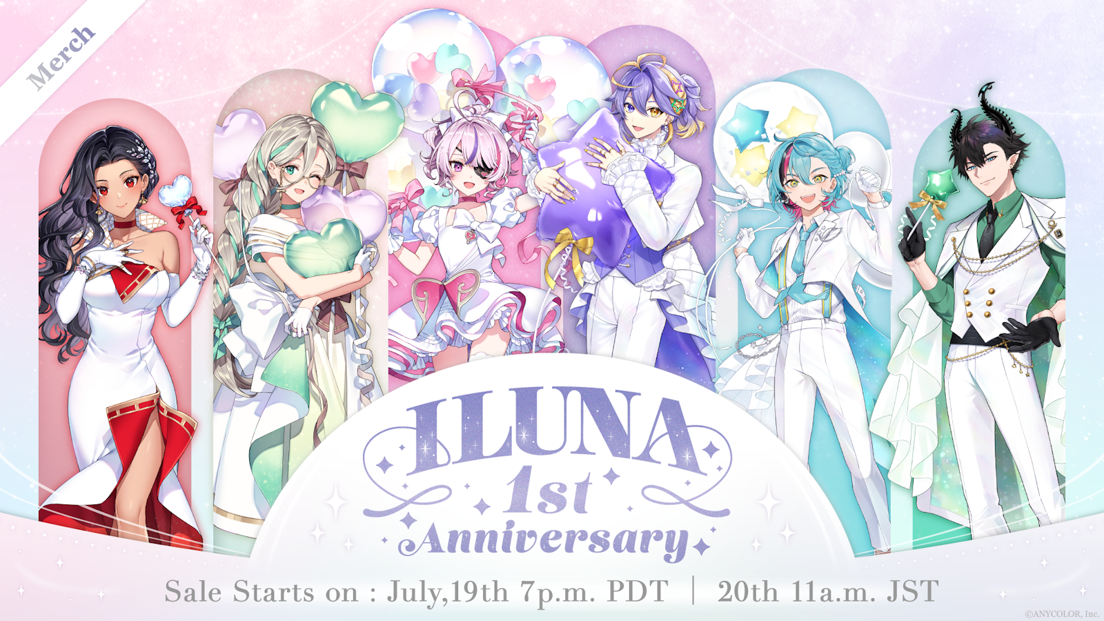 Merchandise for “ILUNA 1st Anniversary” featuring Aia Amare, Aster Arcadia, Kyo Kaneko, Scarle Yonaguni, Maria Marionette and Ren Zotto will be available from July 19th (Wed) 19:00 PDT!