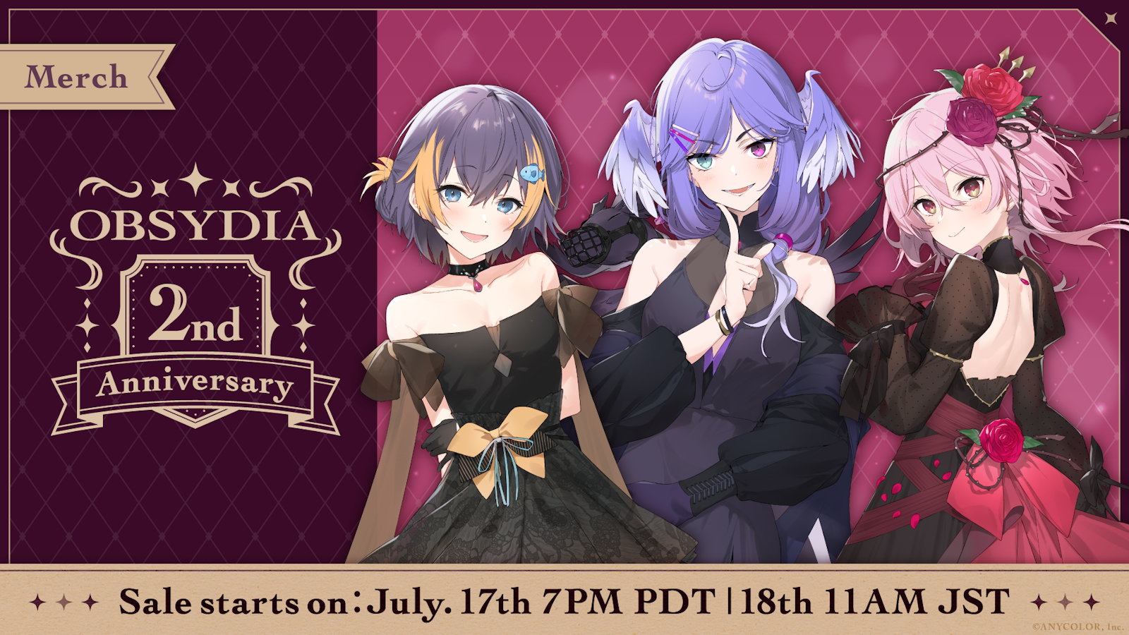 Merchandise for “OBSYDIA 2nd Anniversary” featuring Selen Tatsuki, Petra Gurin and Rosemi Lovelock will be available from July 17th (Mon) 19:00 PDT!!