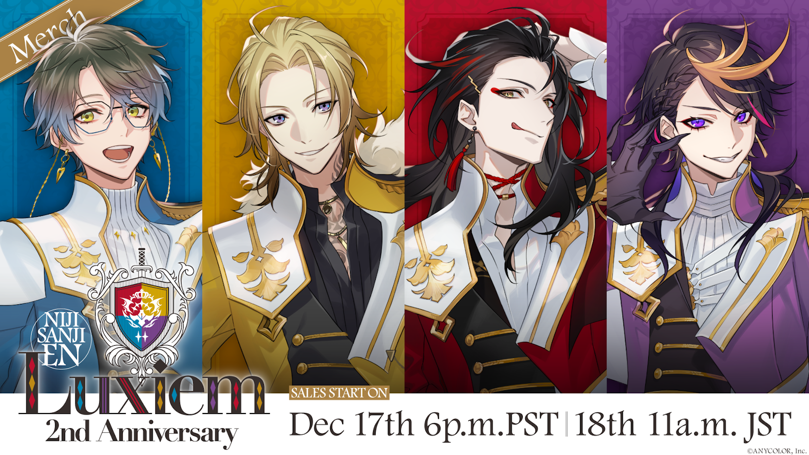 Operated by ANYCOLOR Inc., NIJISANJI EN announces the release of new merchandise featuring the VTuber group “Luxiem”. “Luxiem 2nd Anniversary” merchandise will be available on the NIJISANJI EN Official Store starting from December 17th (Sun), 18:00 PST!