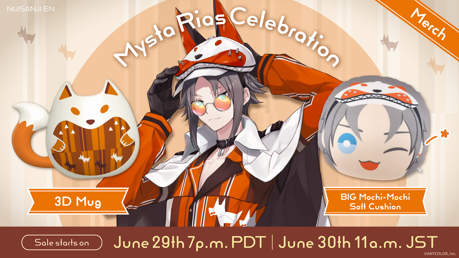 Merchandise for “Mysta Rias Celebration” will be available from June 29th (Thu) 19:00 PDT to commemorate reaching the milestone of 1 million subscribers on YouTube!!