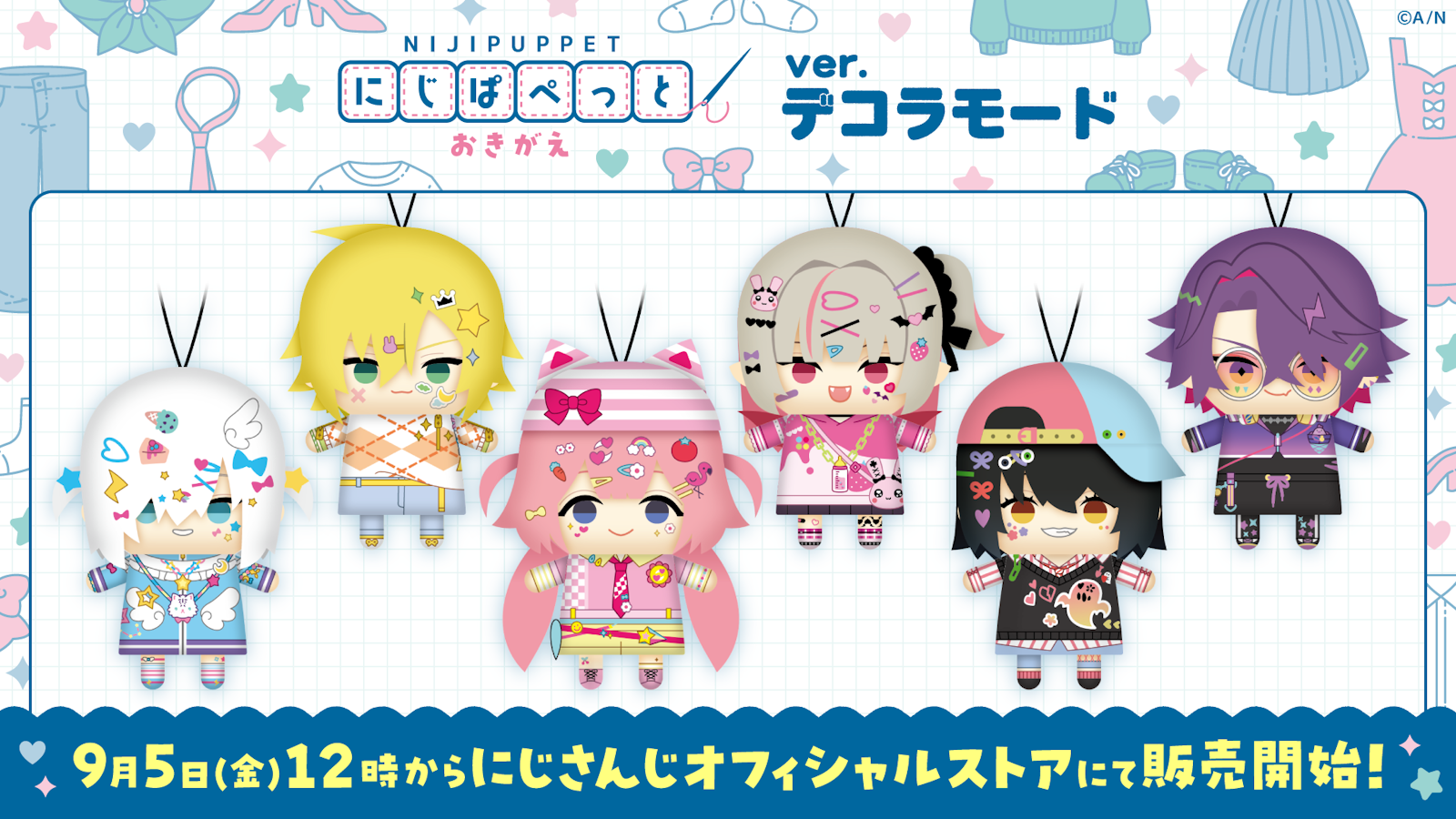 「にじぱぺっと おきがえ ver.デコラモード」グッズは2025年9月5日(金)12時からにじさんじオフィシャルストア(https://shop.nijisanji.jp)にて販売を開始いたします。