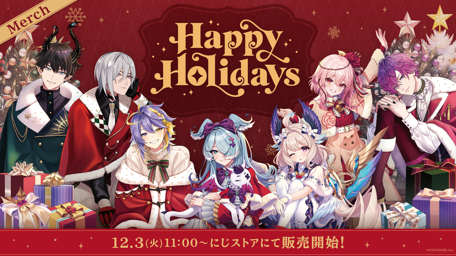 「Happy Holidays」は、2024年12月3日(火)11時(JST)から、にじさんじオフィシャルストア(https://shop.nijisanji.jp/)とNIJISANJI EN Official Store(https://nijisanji-store.com/)にて販売を開始いたします。