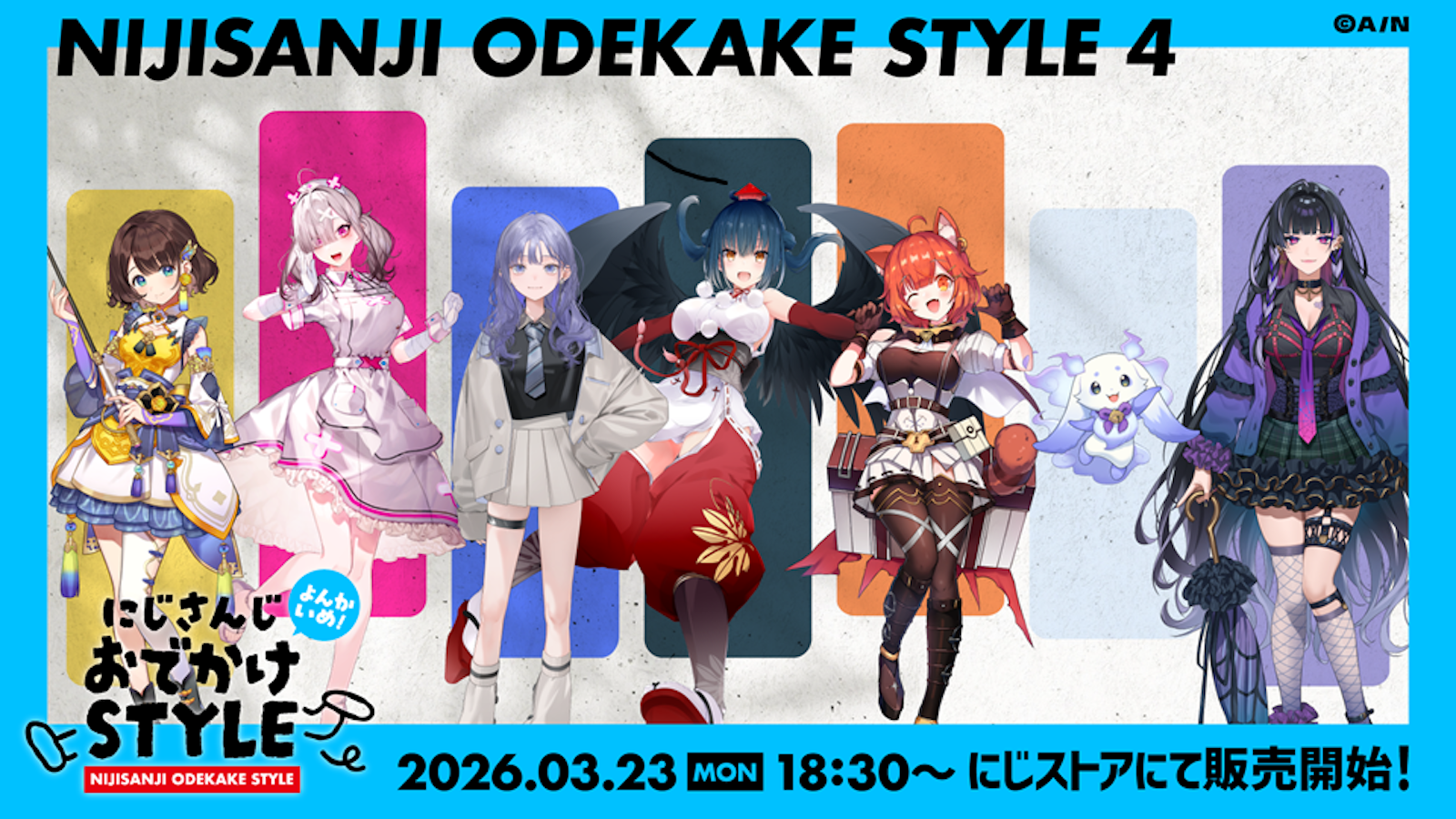 ANYCOLOR株式会社(本社:東京都港区 代表取締役:田角陸、以下「当社」)が運営するVTuber / バーチャルライバーグループ「にじさんじ」「NIJISANJI EN」は、「にじさんじおでかけSTYLE~よんかいめ!~」を2026年3月23日(月)18時30分から販売を開始いたします。