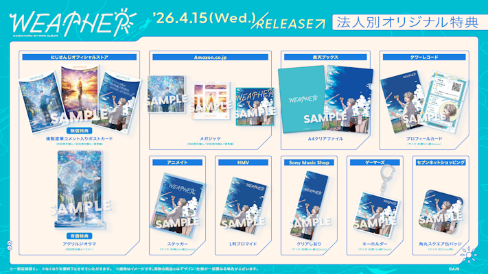 「WEATHER」の発売を記念して、店頭では各種キャンペーンの実施が決定しました!詳細は各店舗の公式サイトをご確認ください。