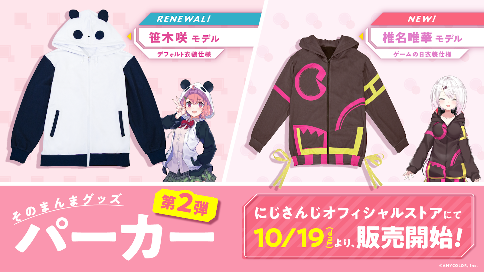 にじさんじライバー「笹木咲」「椎名唯華」のパーカーをグッズ化!「そのまんまグッズ第2弾 パーカー」を2021年10月19日(火)12時から販売開始!