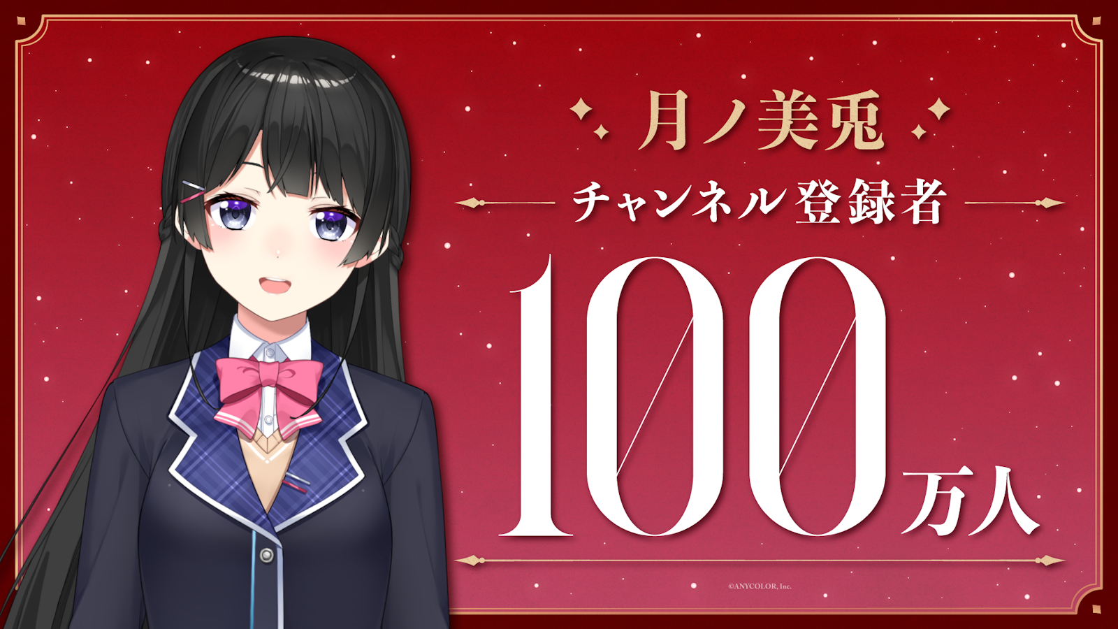 ANYCOLOR株式会社(本社:東京都港区 代表取締役:田角陸、以下「当社」)が運営するVTuber / バーチャルライバーグループ「にじさんじ」は、所属ライバー「月ノ美兎」のYouTubeチャンネル登録者数100万人突破をお知らせいたします。