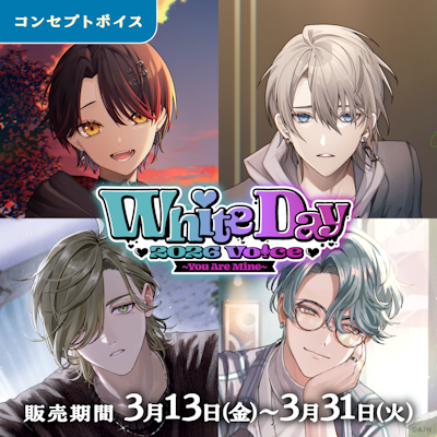 2026年3月13日(金)12時から2026年3月31日(火)23時59分までの期間、にじさんじオフィシャルストア(https://shop.nijisanji.jp)と、NIJISANJI EN Official Store(https://nijisanji-store.com)にて「にじさんじ ホワイトデー2026ボイス~You Are Mine~」「にじさんじ ささやき寝かしつけボイス」の販売をいたします。