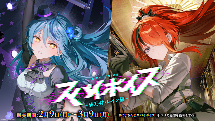 珠乃井ナナ、叢雲カゲツ、レイン・パターソン、ローレン・イロアスが出演する「スパイボイス」は、にじさんじオフィシャルストア(https://shop.nijisanji.jp)と、NIJISANJI EN Official Store(https://nijisanji-store.com)にて2026年2月9日(月)17時から2026年3月9日(月)23時59分までの期間販売をいたします。