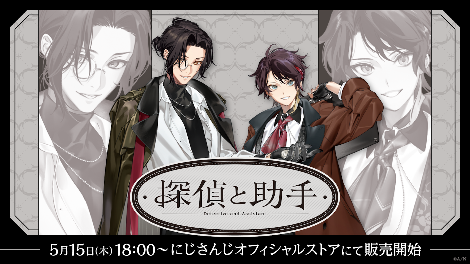 「探偵と助手」グッズは、2025年5月15日(木)18時からにじさんじオフィシャルストアにて販売を開始いたします。
