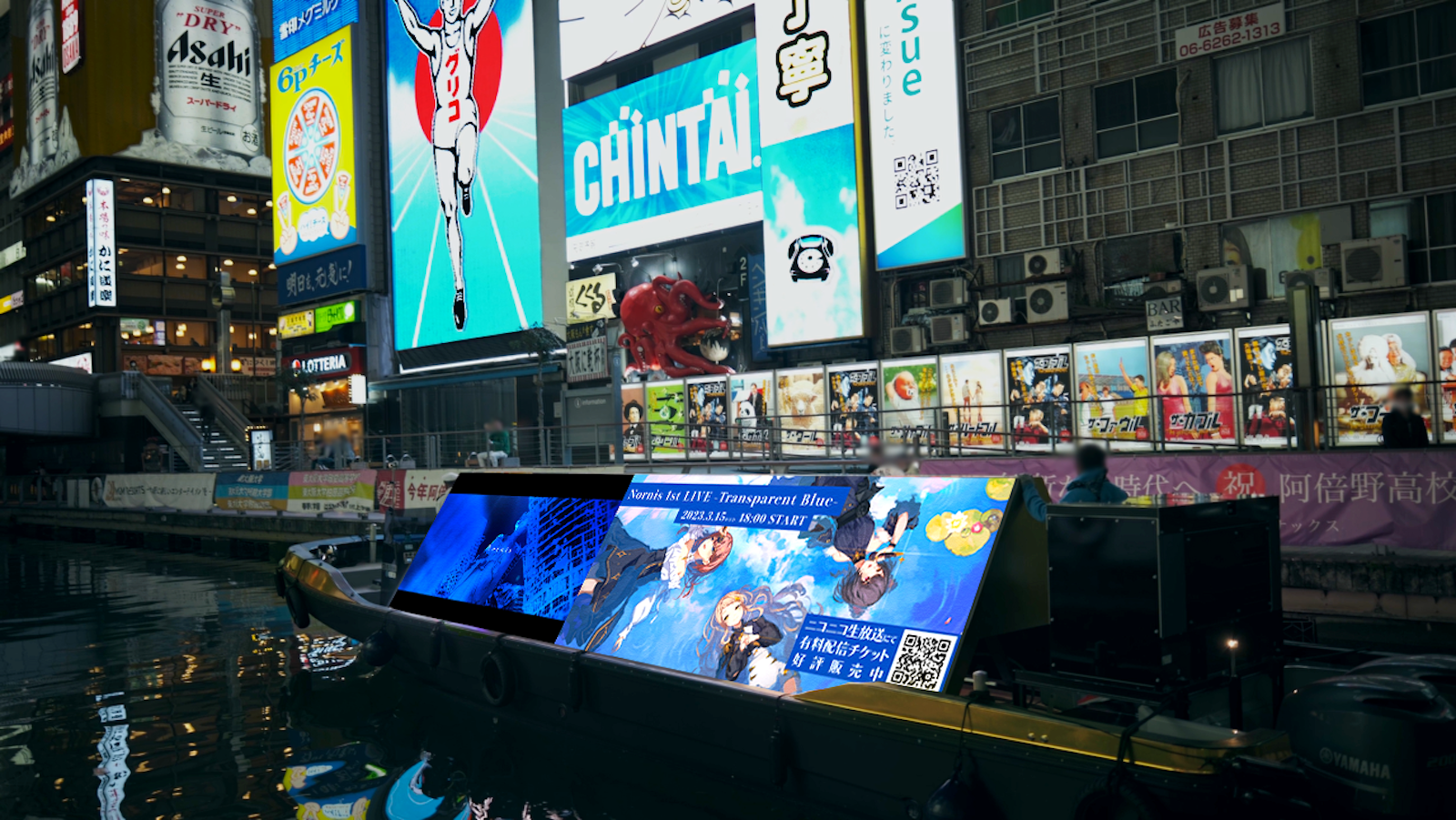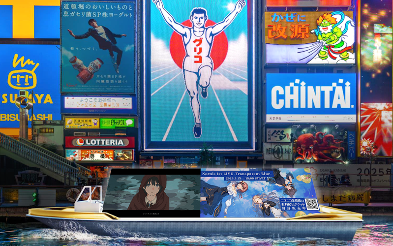 にじさんじは、2023年3月11日(土)から町田ちま、戌亥とこ、朝日南アカネの女性3人組ボーカルユニットNornis(ノルニス)の「Nornis 1st LIVE -Transparent Blue-」ビジョン広告を、道頓堀川をはじめ水都大阪を走るLEDビジョン掲載広告船「LEDアドクルーズ」へ掲出いたしました。
