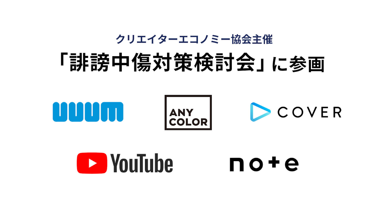 検討会は、クリエイターの活動を支えるプラットフォームから、グーグル合同会社(※YouTubeを運営するGoogle LLCの日本法人)・note株式会社、所属クリエイターの誹謗中傷対策に取り組んできた、UUUM株式会社・当社・カバー株式会社、誹謗中傷問題の有識者である国際大学グローバル・コミュニケーション・センター 准教授 山口真一氏で構成されています。それぞれの立場から意見を交換し、現状を学び合い、ともに課題に取り組んで参ります。