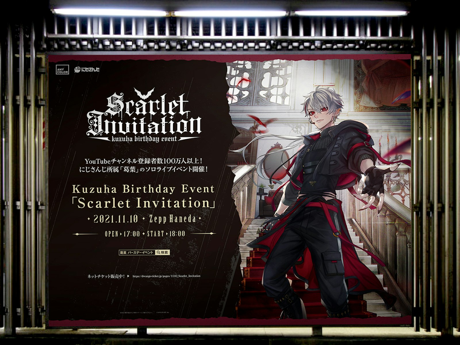 にじさんじは、2021年10月1日(金)より、東京・大阪・名古屋の計34駅44ヶ所に、VTuber「葛葉」の誕生日である2021年11月10日(水)開催イベント Kuzuha Birthday Event 「Scarlet Invitation」の広告を掲出開始いたしました。