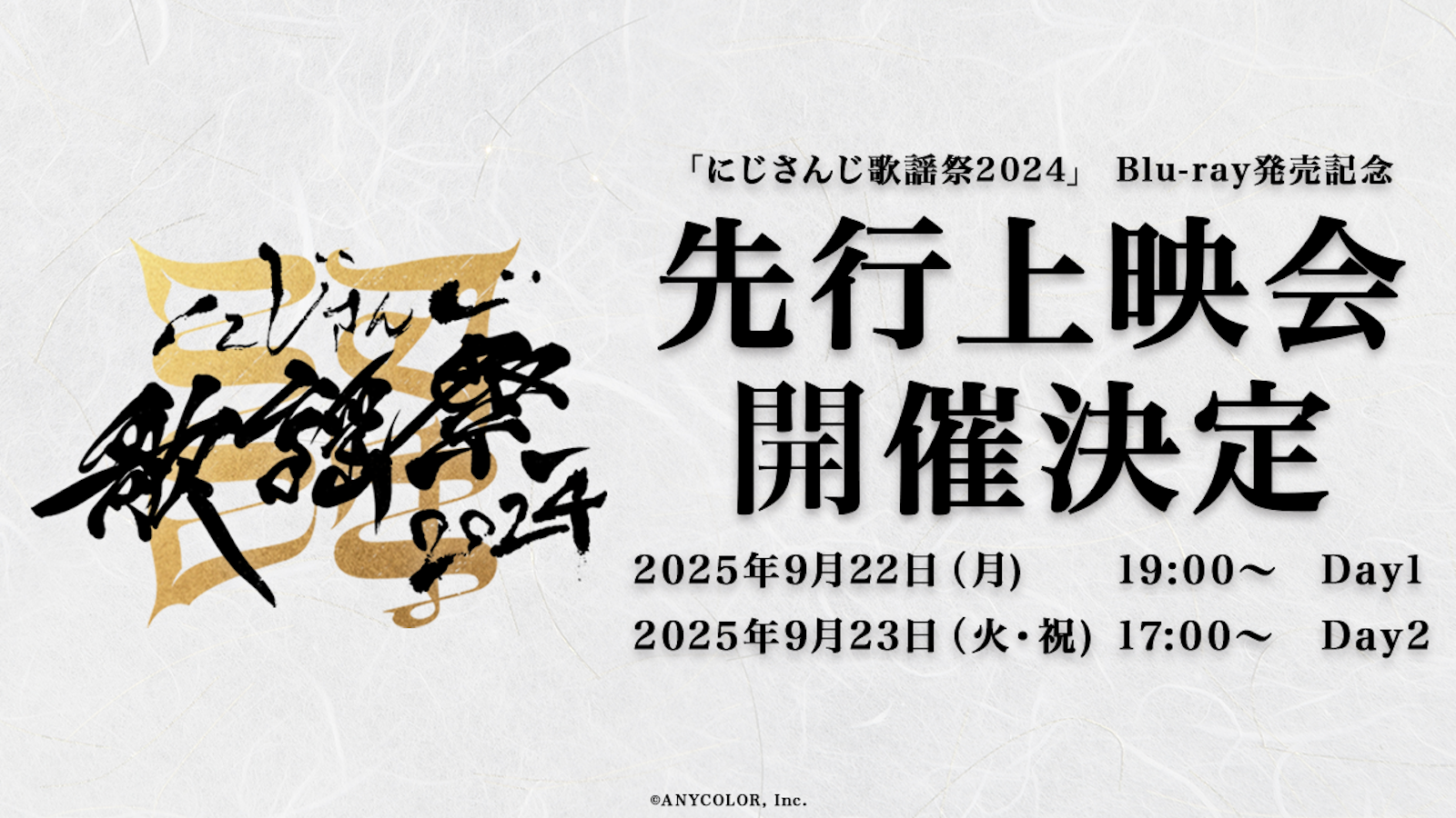 ANYCOLOR株式会社(本社:東京都港区 代表取締役:田角陸、以下「当社」)が運営するVTuber / バーチャルライバーグループ「にじさんじ」は、2025年9月24日(水)より発売される「にじさんじ歌謡祭2024」 Blu-ray発売を記念した先行上映会の開催情報をお知らせいたします。