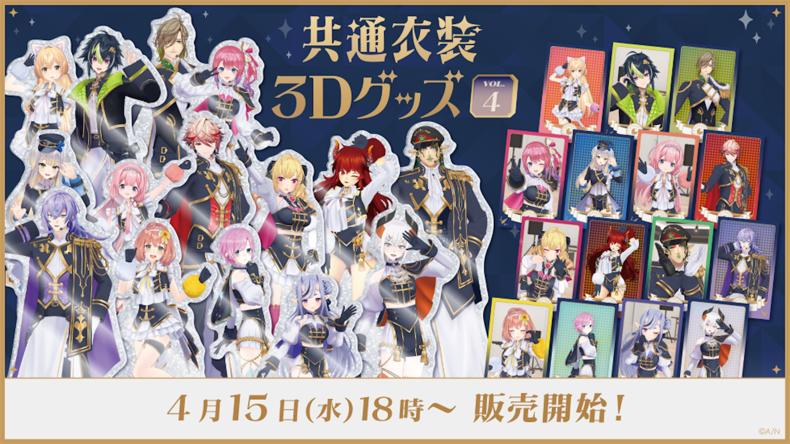 ANYCOLOR株式会社(本社:東京都港区 代表取締役:田角陸、以下「当社」)が運営するVTuber / バーチャルライバーグループ「にじさんじ」は、「共通衣装3Dグッズ vol.4」を2026年4月15日(水)18時からにじさんじオフィシャルストアにて販売を開始いたします。