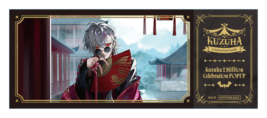 「Kuzuha 2 Million Celebration POPUP」で販売されているグッズをご購入3,000円(税込)毎に、会場限定ノベルティ「チケット風カード(全6種)」から1枚ランダムでプレゼントいたします。