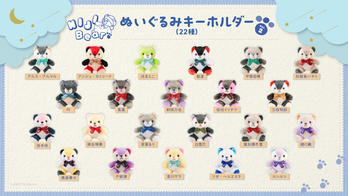 ANYCOLOR株式会社(本社:東京都港区 代表取締役:田角陸、以下「当社」)が運営するVTuber / バーチャルライバーグループ「にじさんじ」は、「NIJIベアキーホルダー Vol.2」を2025年10月27日(月)18時から販売開始いたします。