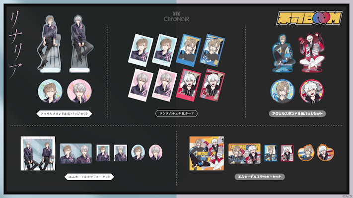 グッズラインナップは、アクリルスタンド&缶バッジセット、ランダムチェキ風カード、エムカード&ステッカーセットの全3種。