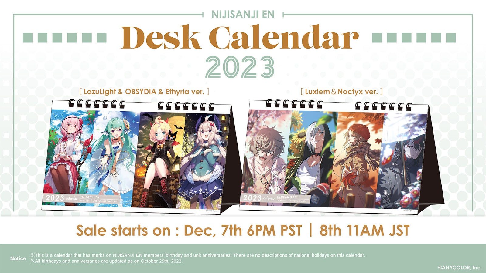 “NIJISANJI EN Desk Calendar 2023” will be available from December 7th (Wed) 18:00 PST!!