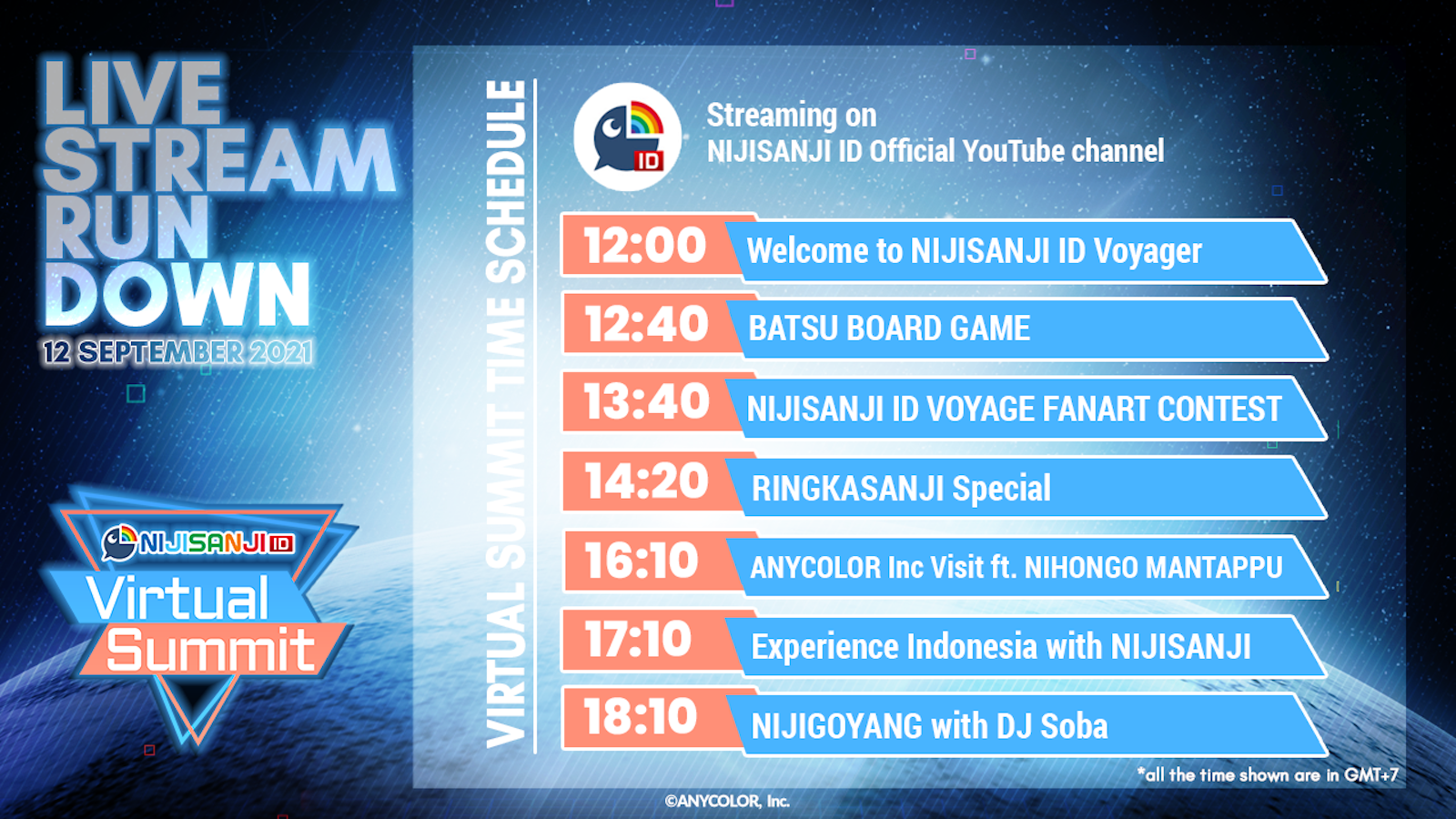 本イベントはNIJSIANJI ID公式チャンネル( https://www.youtube.com/c/NIJISANJIIDOfficial )にて2021年9月12日(日)、日本時間14時より実施いたします。