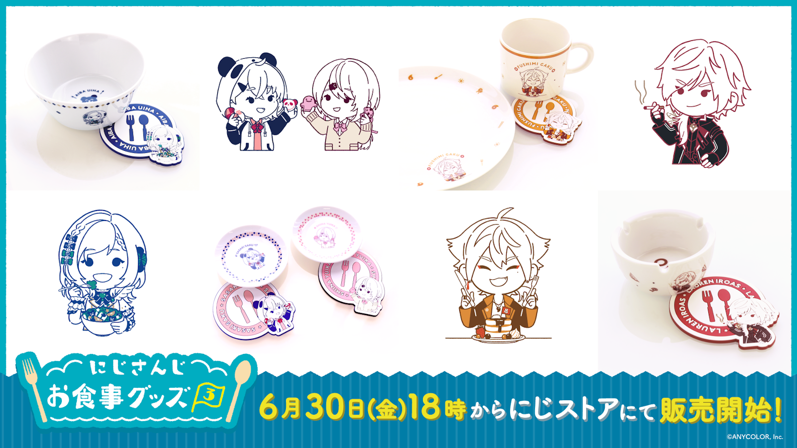 ANYCOLOR株式会社(本社:東京都港区 代表取締役:田角陸、以下「当社」)が運営するVTuber / バーチャルライバーグループ「にじさんじ」は、2023年6月30日(金)18時からにじさんじオフィシャルストアにて、「にじさんじお食事グッズ3」の販売を開始いたします。