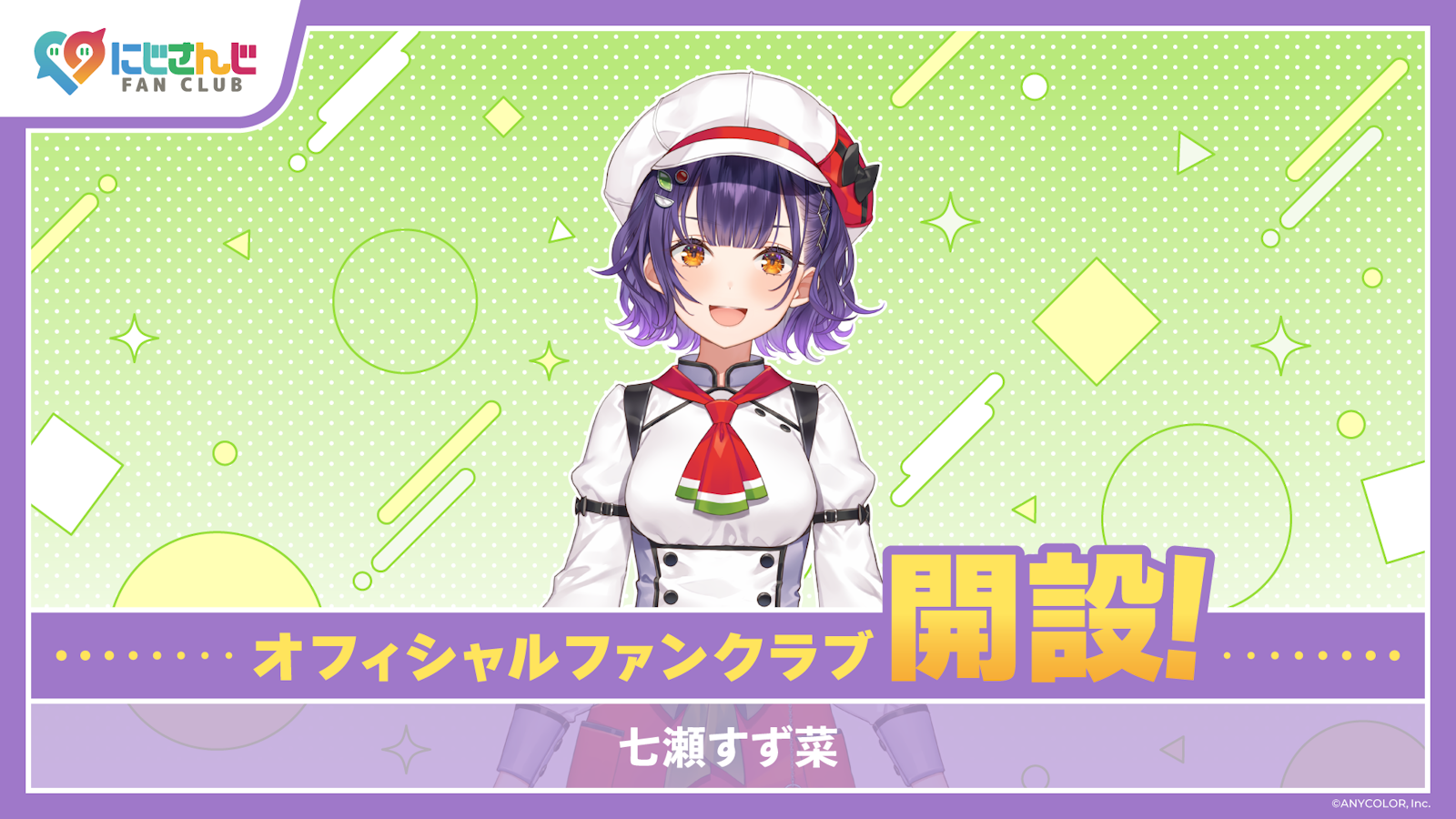 ANYCOLOR株式会社(本社:東京都港区 代表取締役:田角陸、以下「当社」)が運営するVTuber / バーチャルライバーグループ「にじさんじ」は、公式ファンクラブ「にじさんじ FAN CLUB」にて、七瀬すず菜のファンクラブを新規開設いたしました。
