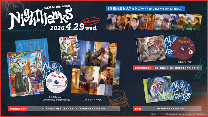 2026年4月29日(水)に発売される、3SKMの1st Mini Album「Nighthawks」の各種ビジュアルが公開されました。