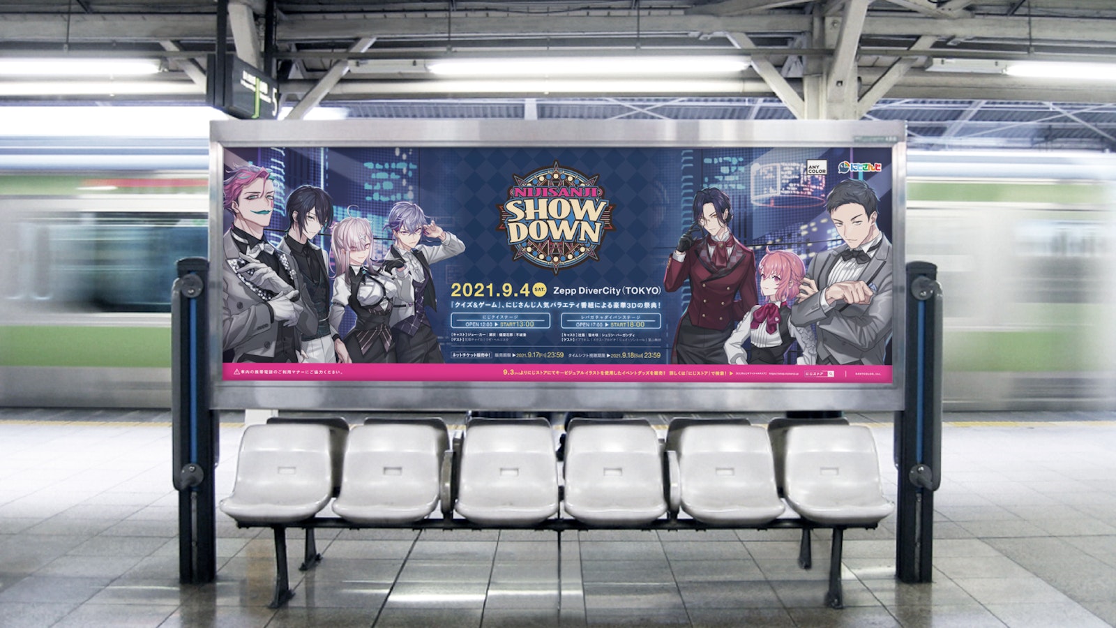 2021年9月4日(土)開催3Dイベント「NIJISANJI SHOW DOWN」と「にじさんじオフィシャルストア」の駅広告を展開中!
